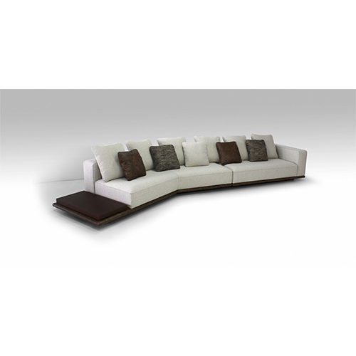 Данную модель дивана рекомендуется заказывать в ткани. Царга может быть выполнена в ткани, коже, а также комбинированной. Опора выполнена из массива ясеня а ее расположение создает «парящий эффект».