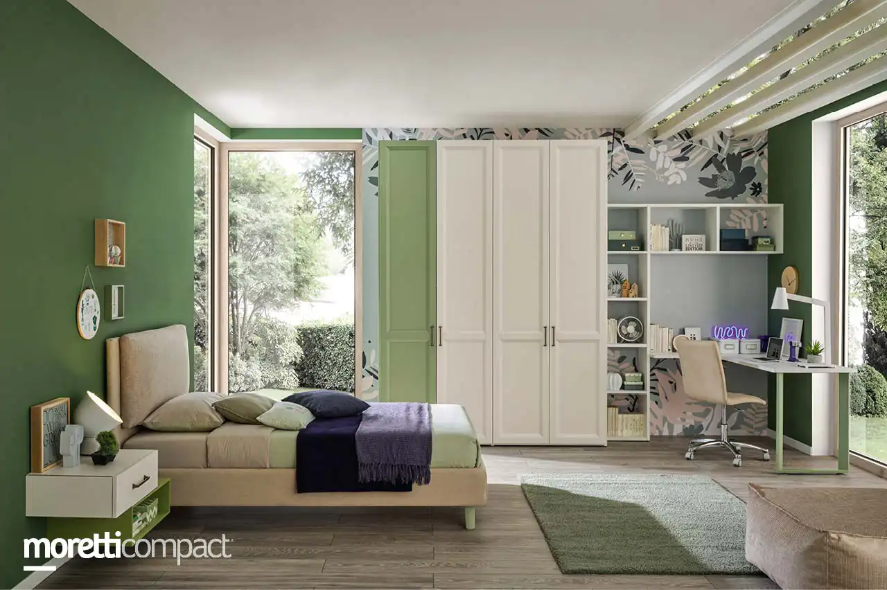 Чтобы сконцентрироваться во время учебы, вам понадобится хорошо оборудованный рабочий уголок. Примером может служить этот угловой письменный стол, поддерживаемый с одной стороны стороной Form из лакированного металла и упирающийся в настенный книжную полку с другой стороны. Столешница выполнена в светло-белом цвете и благодаря большой поверхности обеспечивает максимальный комфорт для тех, кто учится, оставляя под рукой место для всего необходимого.